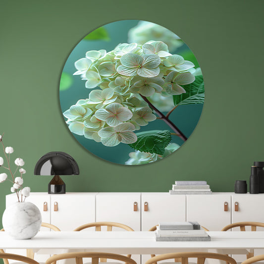 Close-up van Zachtroze Hortensia Bloemen aluminium muurcirkel
