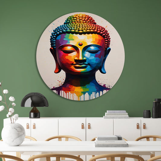 Colorful Serenity: A Modern Buddha Portrait aluminium muurcirkel