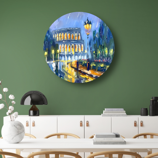 Colosseum weerspiegeld in water aluminium muurcirkel