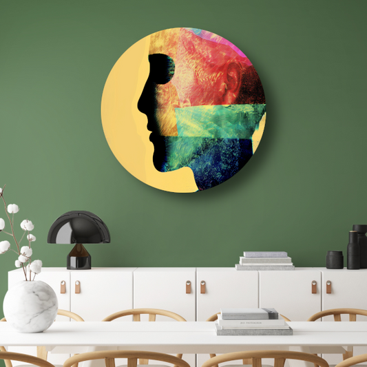 Complexiteit van menselijke emoties gevangen in kleur aluminium muurcirkel