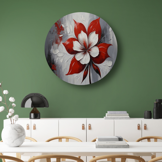Contrastrijke Abstractie van Rode Bloei aluminium muurcirkel