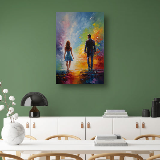 Couple Amidst Vivid Abstract Colors canvas met baklijst