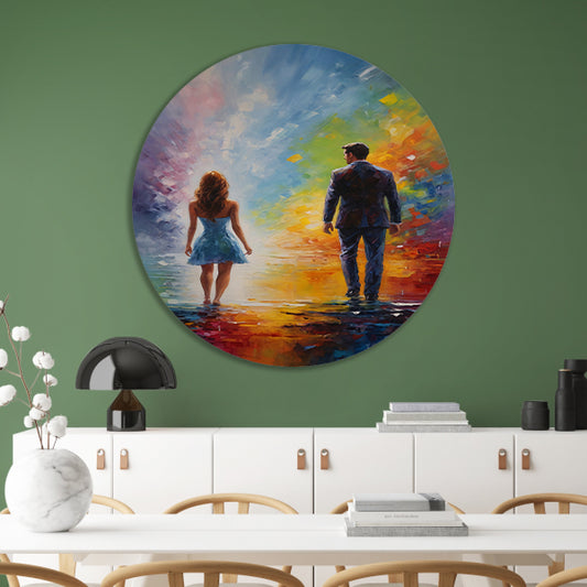 Couple Amidst Vivid Abstract Colors aluminium muurcirkel