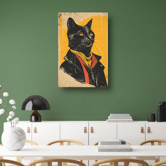 Cyberpunk Kat in Retro Stijl aluminium muurcirkel