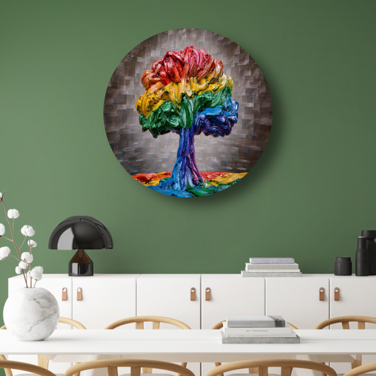 De dans van kleur en leven op canvas aluminium muurcirkel