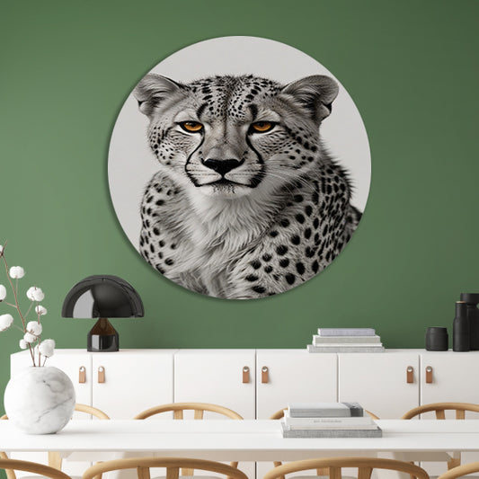 De doordringende blik van een cheeta aluminium muurcirkel
