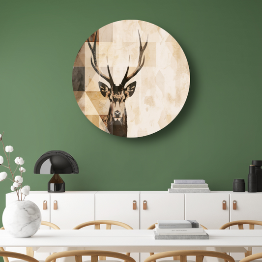 Abstract Hert in Sepia Geometrische Kunst aluminium muurcirkel