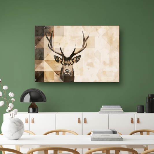 Abstract Hert in Sepia Geometrische Kunst canvas met baklijst