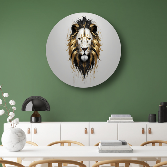 De Leeuw: Een Symfonie in Kleur en Kracht aluminium muurcirkel