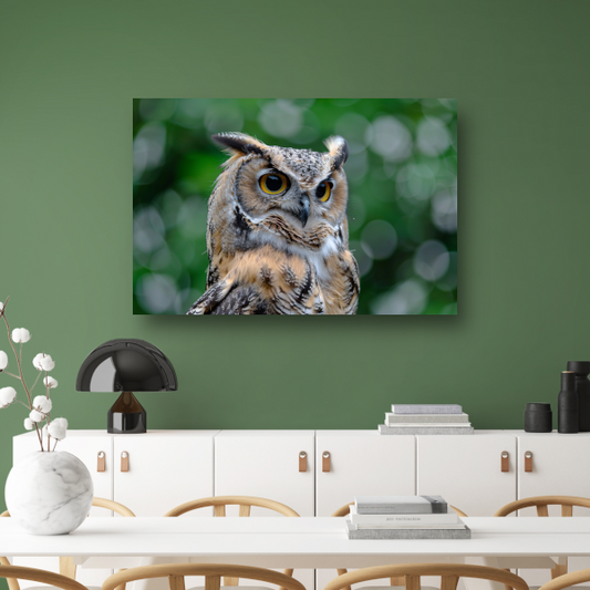 De Majestueuze Blik van een Uil aluminium muurcirkel