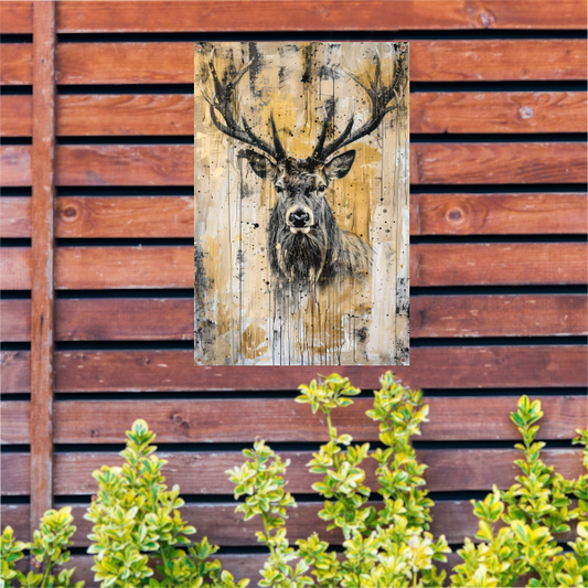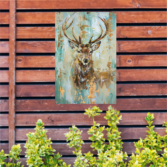 Abstract hertenportret met gouden accenten tuinposter