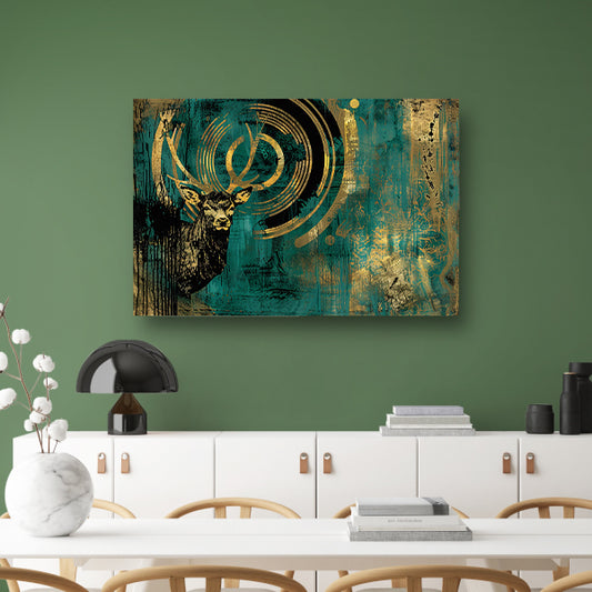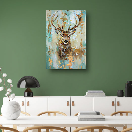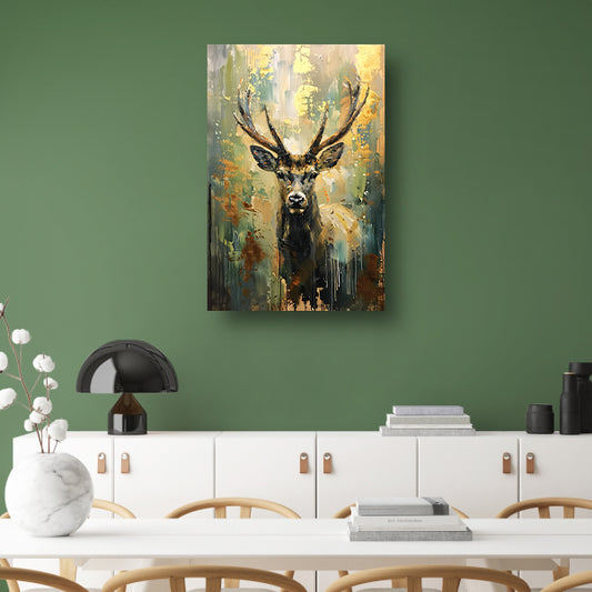 Abstract hertenschilderij met groene en gouden tinten canvas met baklijst