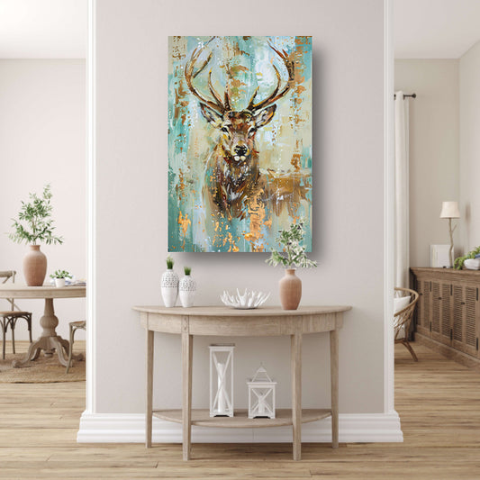 Abstract hertenportret met gouden accenten canvas