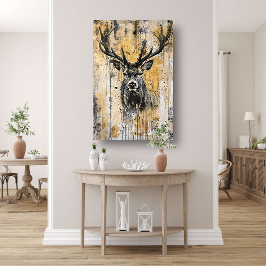 Abstract hertenportret met dynamische verfspetters canvas