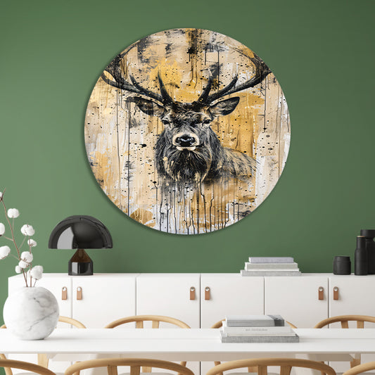 Abstract hertenportret met dynamische verfspetters aluminium muurcirkel