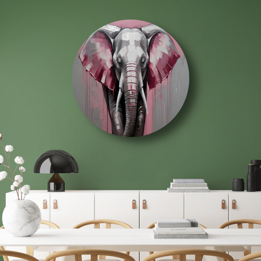De Roze Accenten van een Majestueuze Olifant aluminium muurcirkel