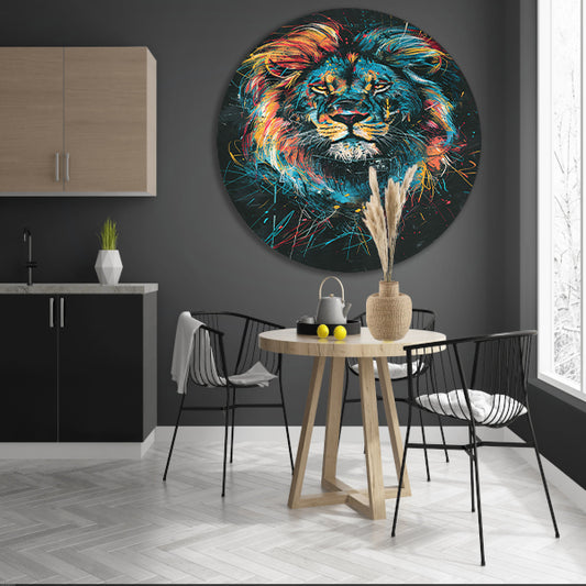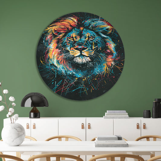 Abstract kleurenportret van een leeuw aluminium muurcirkel