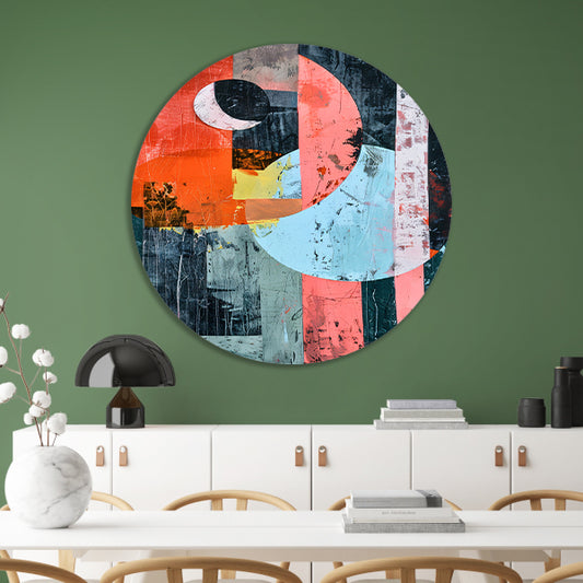 Abstract Kleurenexplosie met Vormen en Lijnen aluminium muurcirkel