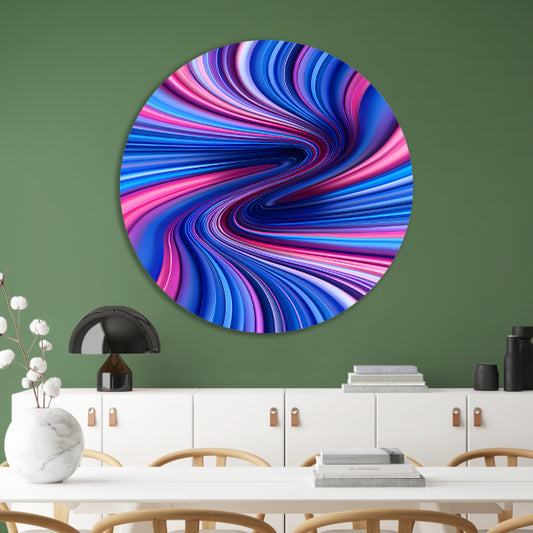 Abstract Kleurenwerveling in Roze, Blauw en Paars aluminium muurcirkel