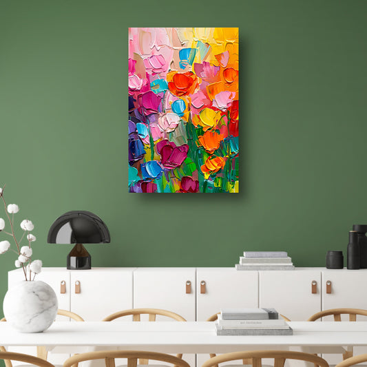 Abstract kleurrijk bloemenveld schilderij voor interieur canvas