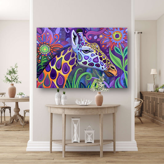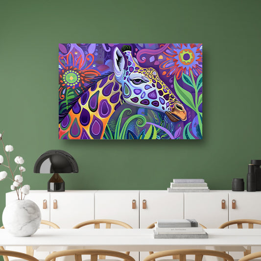 Abstract kleurrijk giraffe schilderij in psychedelische stijl canvas