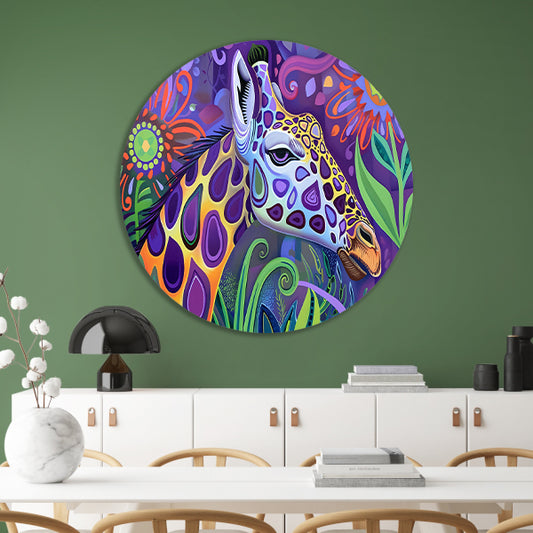 Abstract kleurrijk giraffe schilderij in psychedelische stijl aluminium muurcirkel