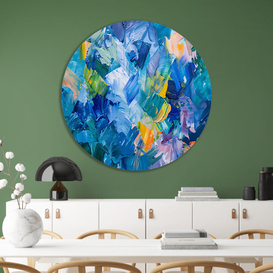 Abstract kleurrijk olieverfschilderij voor moderne ruimtes aluminium muurcirkel