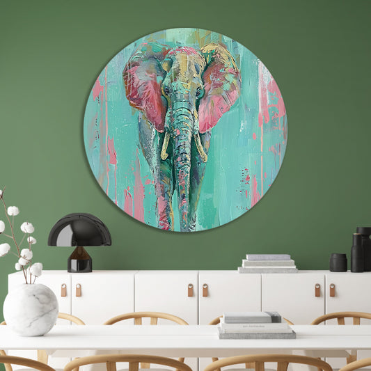 Abstract kleurrijk olifant schilderij aluminium muurcirkel