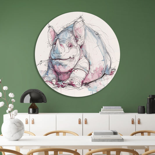 Abstract kleurrijk neushoorn schilderij voor interieur aluminium muurcirkel