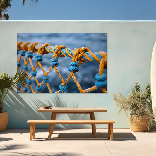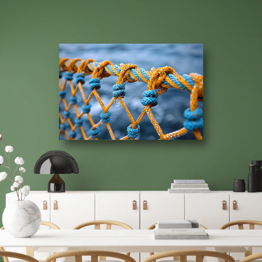 Abstract Knoop in Blauw en Geel canvas met baklijst