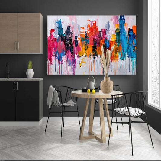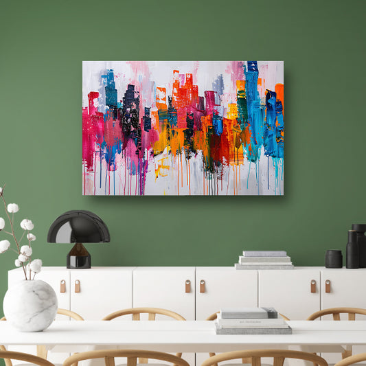 Abstract kleurrijk stadsgezicht op wit doek canvas