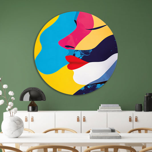 Abstract met twee gezichten aluminium muurcirkel