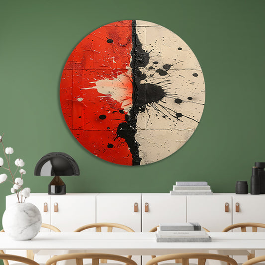 Abstract met rode en zwarte verfspatten aluminium muurcirkel