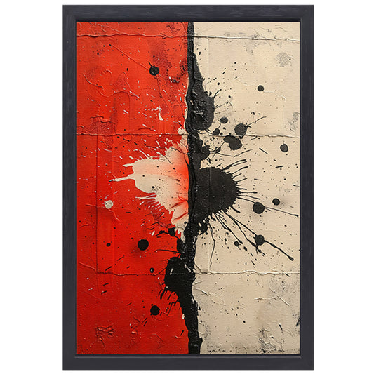 Abstract met rode en zwarte verfspatten canvas met baklijst