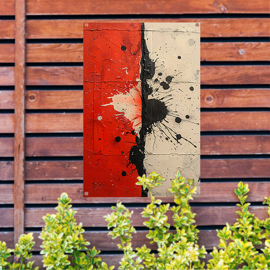 Abstract met rode en zwarte verfspatten tuinposter