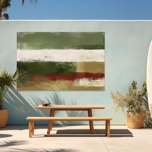 Abstract landschap schilderij met groene tinten tuinposter
