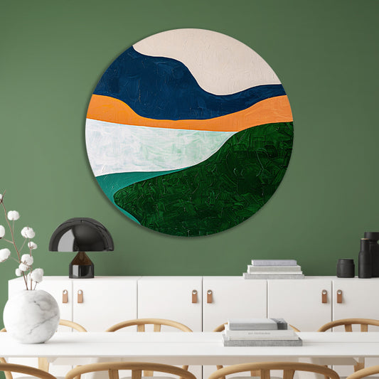 Abstract minimalistisch schilderij van een landschap aluminium muurcirkel