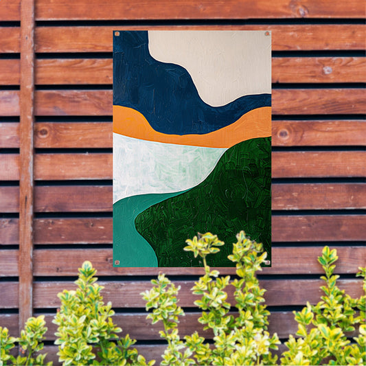 Abstract minimalistisch schilderij van een landschap tuinposter