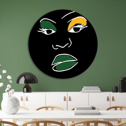 Abstract minimalistisch portret van Afrikaans gezicht aluminium muurcirkel