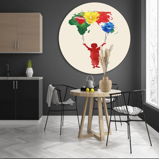 Kind houdt de wereld vast als ballonnen aluminium muurcirkel