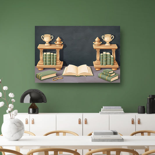 Klassiek stilleven met boeken en trofeeën acrylglas