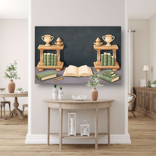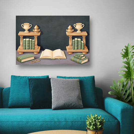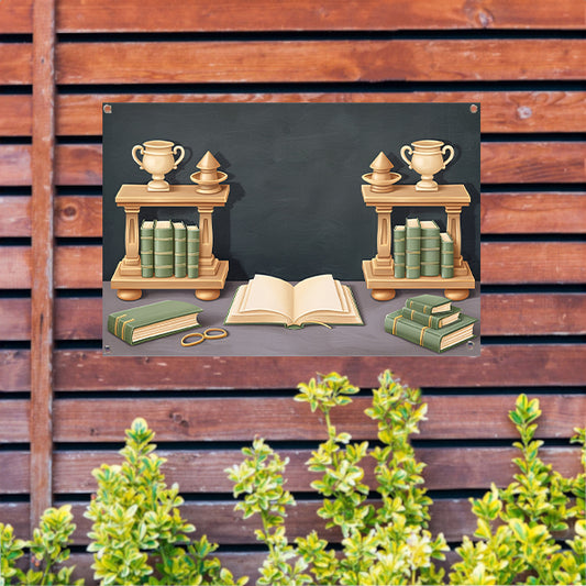 Klassiek stilleven met boeken en trofeeën tuinposter
