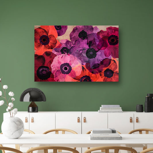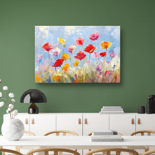 Kleurrijk abstract bloemenveld in warme tinten canvas