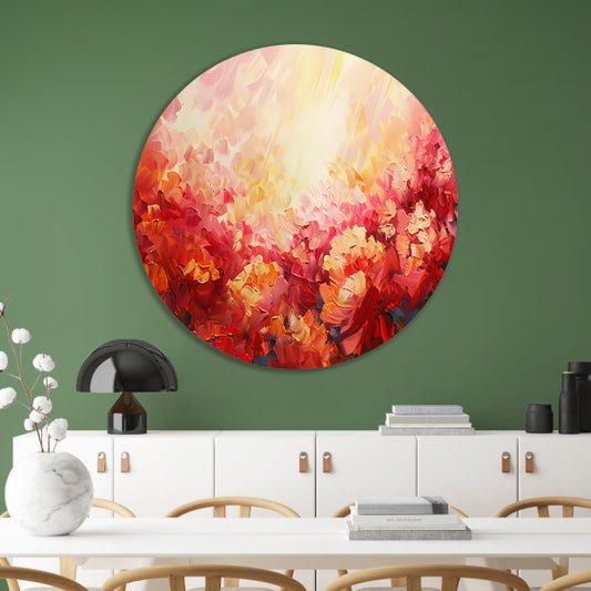 Kleurrijk abstract bloemenveld in warme tinten forex muurcirkel