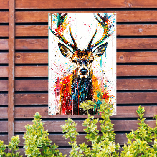 Kleurrijk abstract hert schilderij met spetters tuinposter
