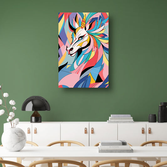 Kleurrijk abstract paard in kubistische stijl canvas met baklijst