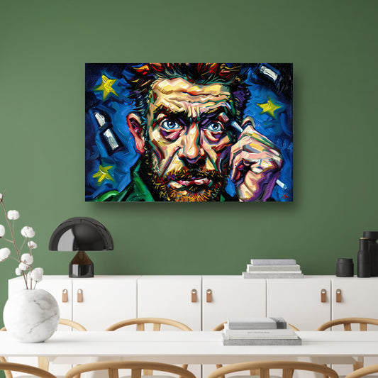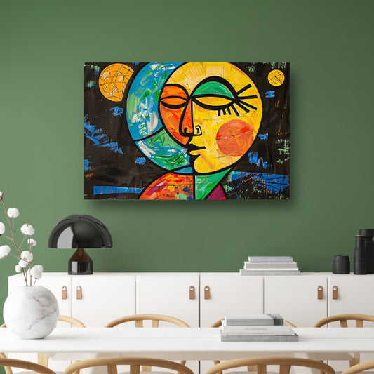 Kleurrijk abstract portret met sterrenachtergrond canvas