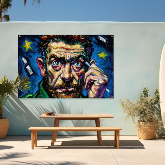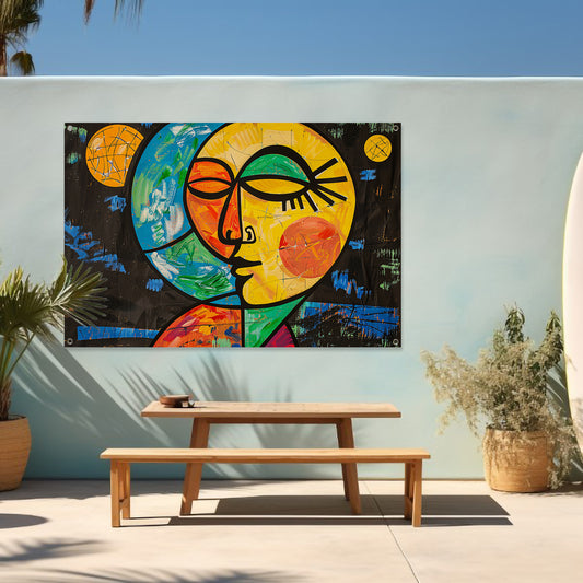 Kleurrijk abstract portret met sterrenachtergrond tuinposter