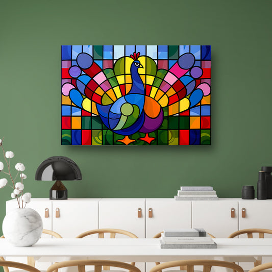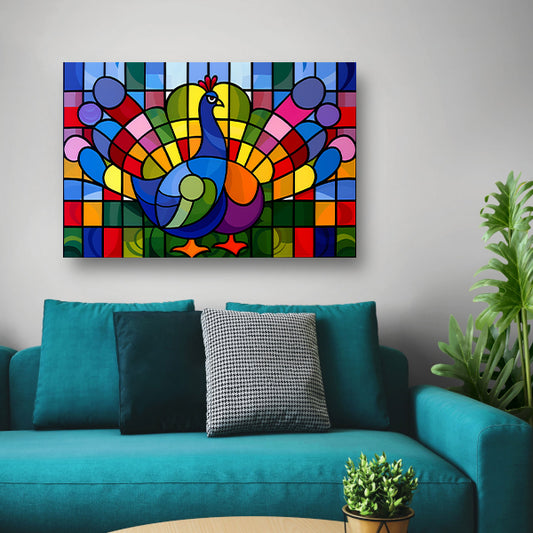 Kleurrijk abstract pauwen schilderij op glas canvas