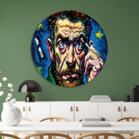 Kleurrijk abstract portret met sterrenachtergrond aluminium muurcirkel